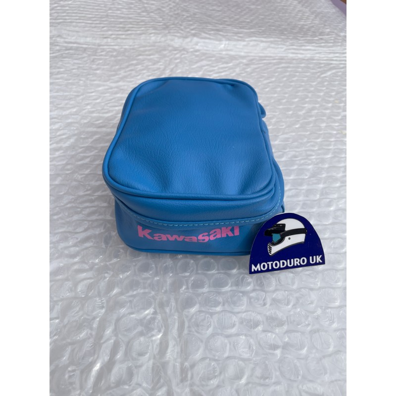 Rear fender tool bag, side loading, inside cross strap buckle fastening and pink flash logo on the rear as per the original.